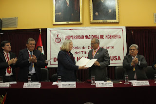 El reconocimiento fue otorgado por el Dr. Jorge Alva Hurtado, rector (a.i) de la Universidad Nacional de Ingeniería (UNI), quien le extendió el diploma de honor e impuso la medalla al mérito.