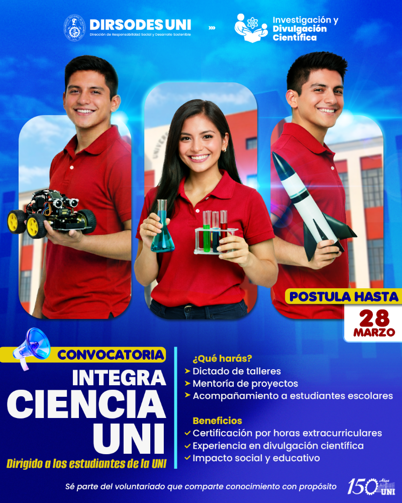 Proyecto Integra Ciencia UNI | Dirigido a estudiantes UNI | Cierre de convocatoria: 28 de marzo.