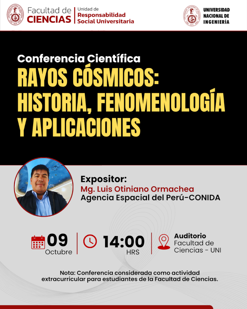 Evento Científico organizado por la Facultad de Ciencias-UNI: “Rayos Cósmicos: Historia, Fenomenología y Aplicaciones”. | Fecha 09 de Octubre