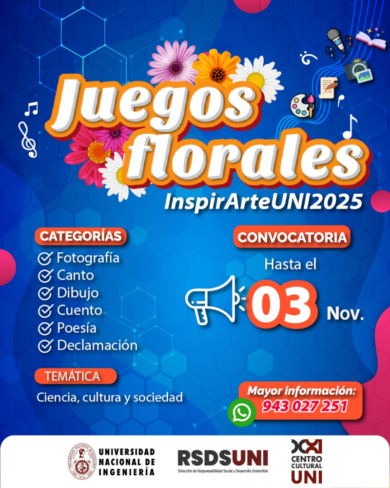 Convocatoria abierta a toda la comunidad UNI: Juegos Florales 2025 “INSPIRARTE" | Recepción de obras hasta el 03 de Noviembre