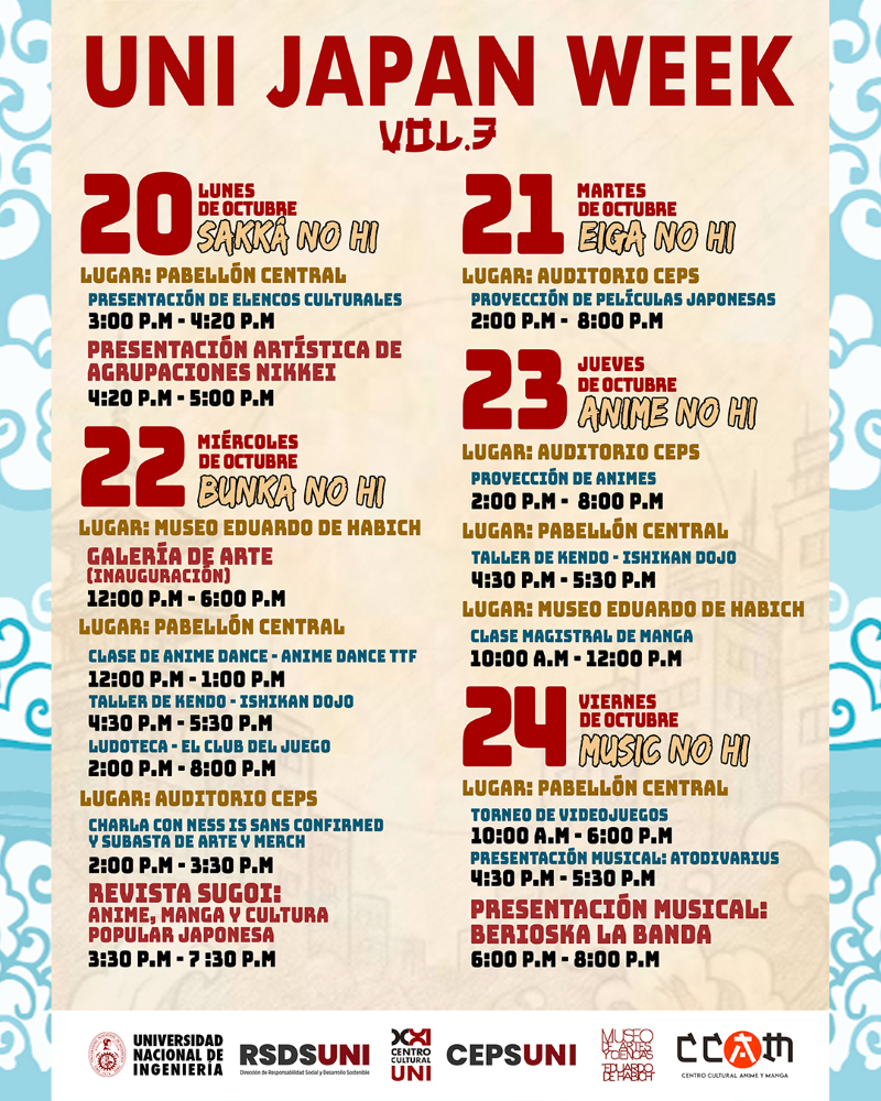 Unidad Centro Cultural UNI invita al UNI JAPAN WEEK Vol.3 -2025 | del 20 al 24 de Octubre