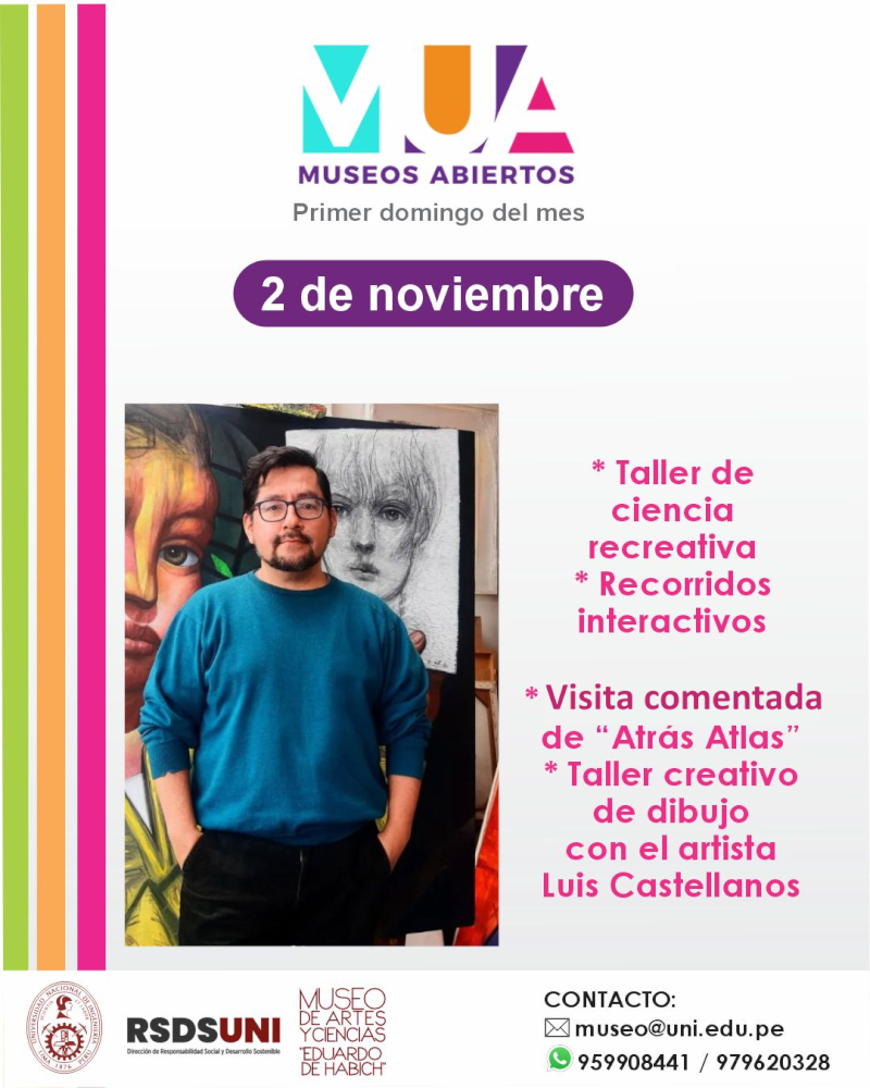 Así como la visita comentada de la obra “Atrás Atlas” y del taller de dibujo a cargo del artista Luis Castellanos Jara.