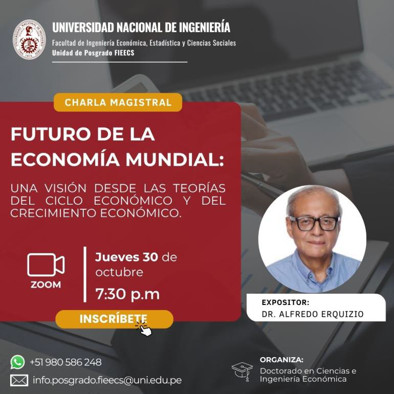El Doctorado en Ciencias e Ingeniería Económica de la FIEECS UNI te invita a la charla magistral: Futuro de la Economía Mundial | Fecha 30 de Octubre