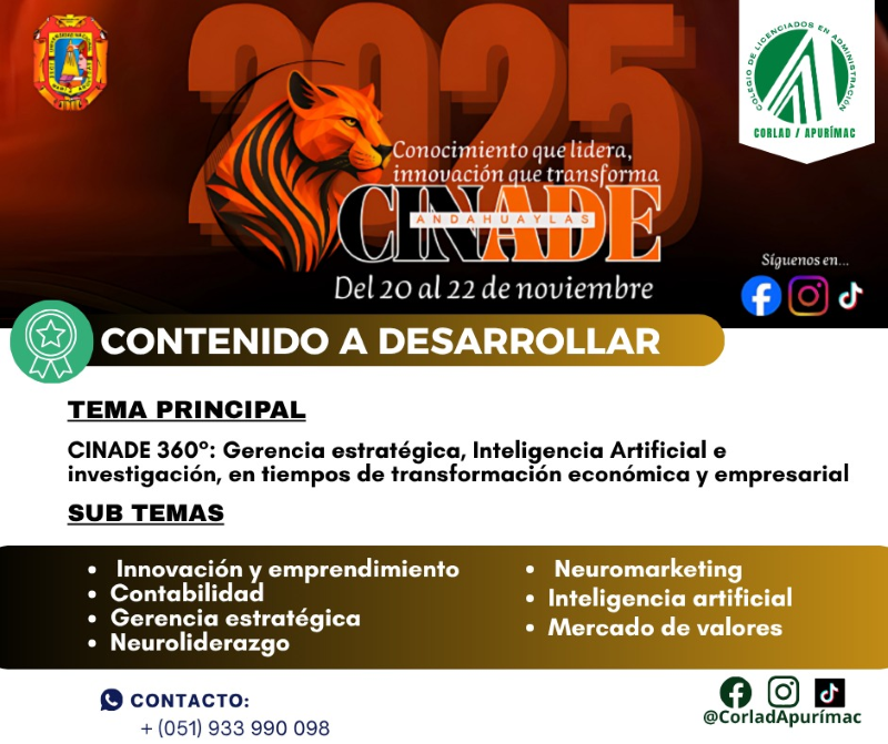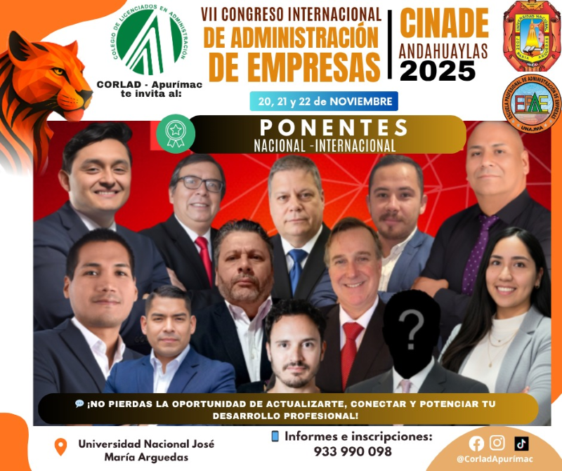 El CORLAD Apurímac te invita al VII Congreso Internacional de Administración de Empresas – CINADE 2025! | Fechas: 20, 21, 22 de Noviembre
