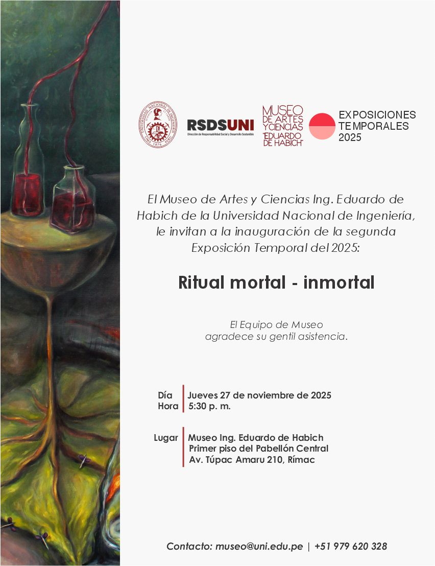 El Museo de Artes y Ciencias Ing. Eduardo de Habich El Museo te invita a la inauguración de la exposición temporal "Ritual mortal - inmortal" de la artista Nicohol Villalobos.| 27 de Noviembre