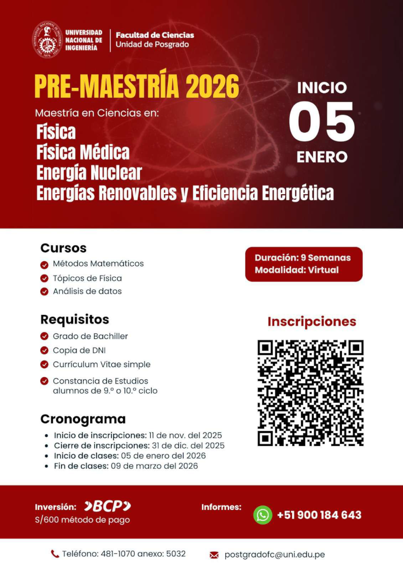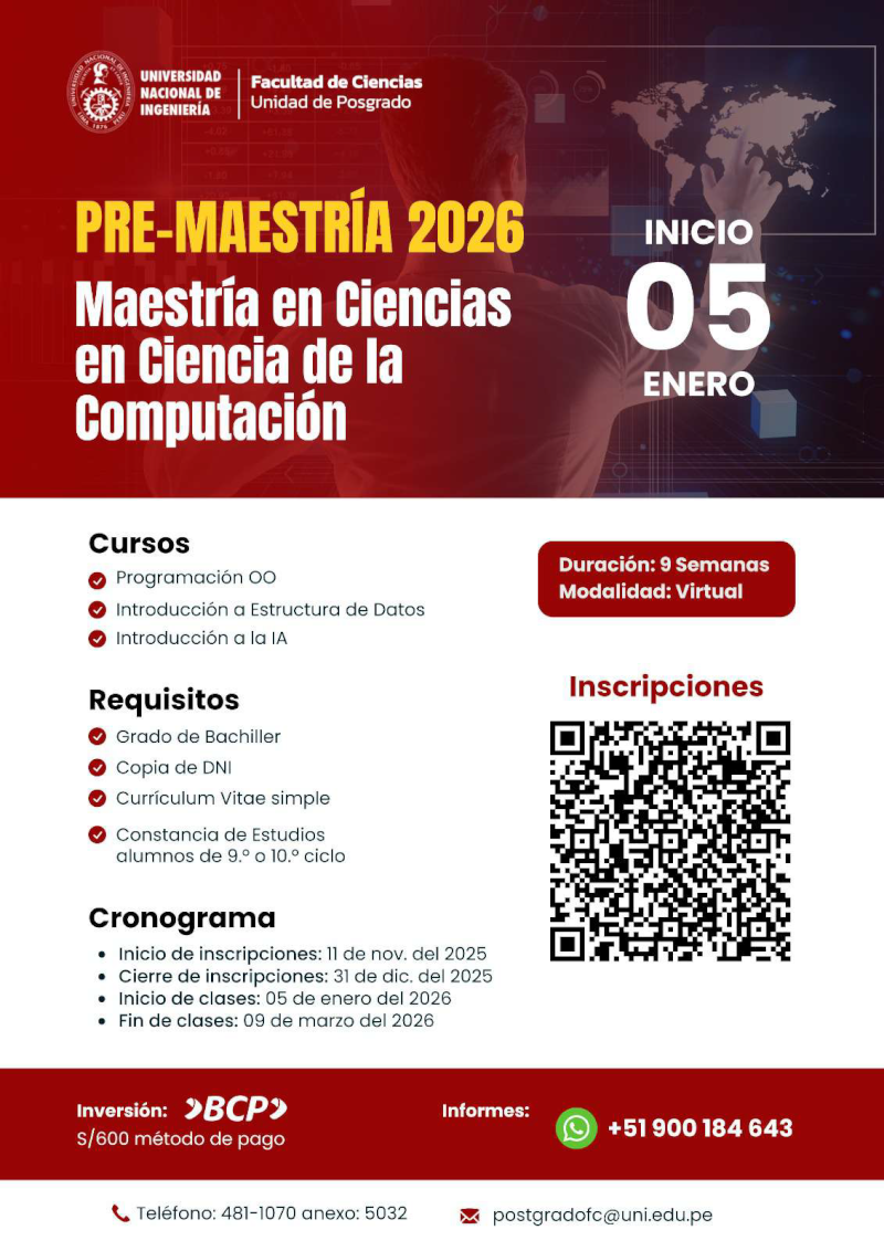 - PRE MAESTRÍA:PROGRAMA DE PRE MAESTRÍA FIIS 2026-1 / INSCRIPCIONES HASTA EL 03 DE ENERO DE 2026.
