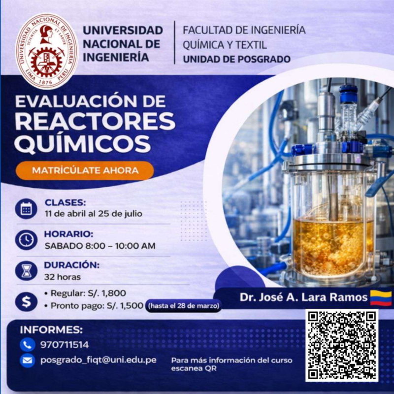 - UNIDAD DE POSGRADO FIQT: DOCTORADO EN CIENCIAS E INGENIERIA QUIMICA ADMISION 2026-1 | INSCRIPCIONES ABIERTAS HASTA EL 04 DE ABRIL