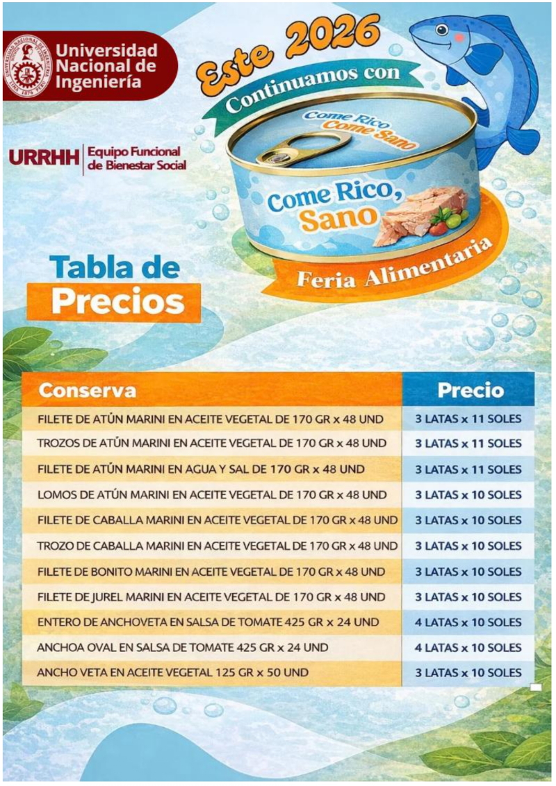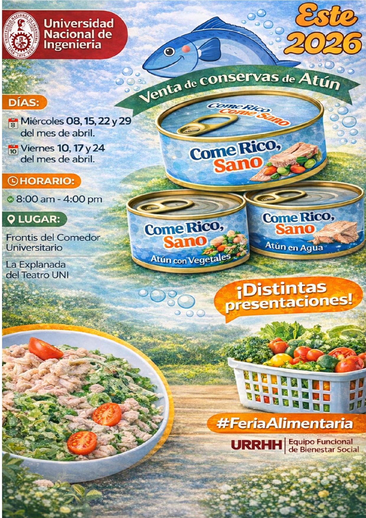 La Unidad de Recursos Humanos ha programado en el marco del plan de Bienestar Social 2026: la 7ma. Feria Alimenticia “COME RICO, COME SANO” | Fechas: 08, 10, 15, 17, 22, 24 y 29 de Abril