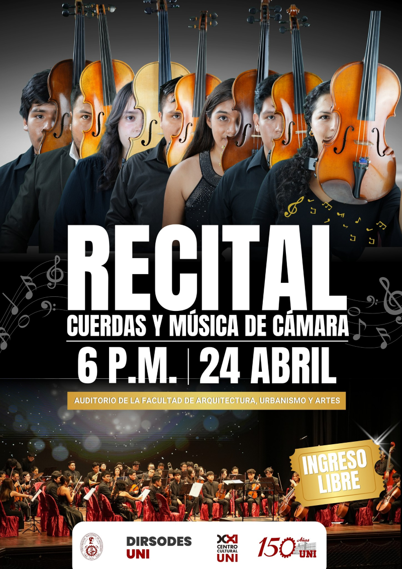 Recital de Cuerdas y Música de Cámara a realizarse el 24 de abril a las 6:00pm en el Auditorio de la FAUA, con INGRESO LIBRE.