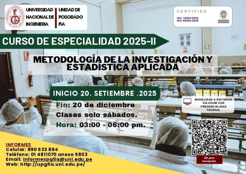 CURSOS DE ESPECIALIDAD 2025-II DE LA UNIDAD DE POSGRADO DE LA FIA