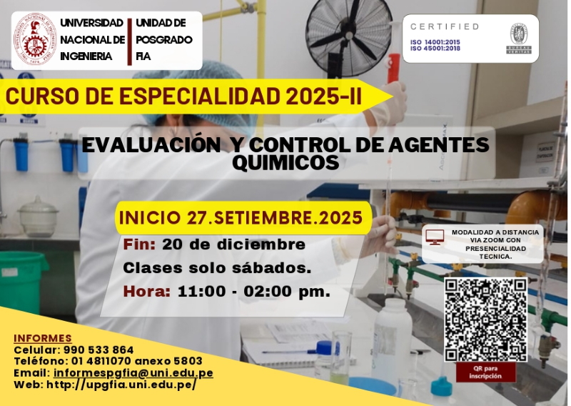 Evaluación y Control de Agentes Químicos. | Inicio 27 de Septiembre |