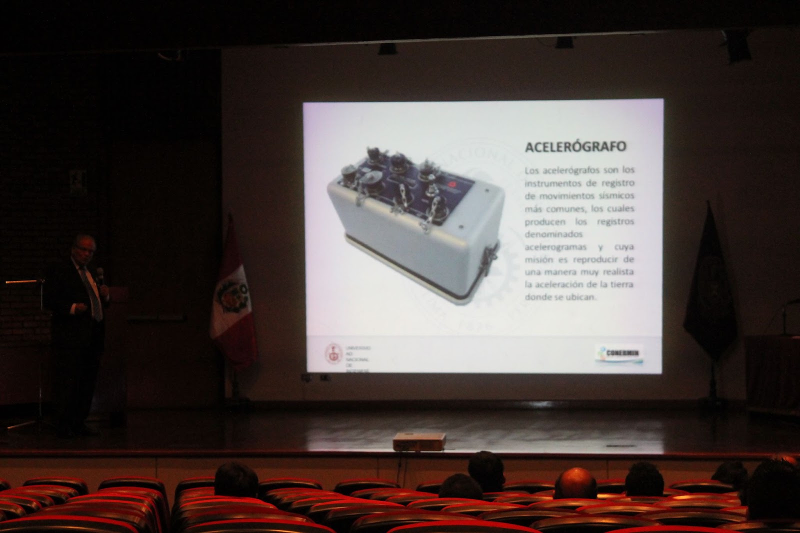 El evento realizado en el auditorio de la Facultad de Urbanismo y Artes contó con la presencia del rector (a.i.) de la UNI, Dr. Jorge Alva Hurtado quien explicó a los presentes sobre la instrumentación geotécnica en la represa Pillones.