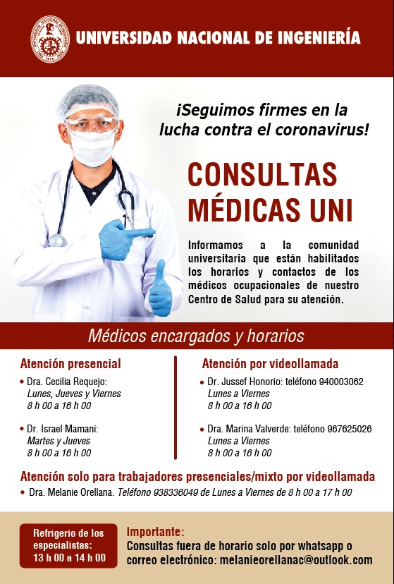 Mar Jul 6 MÉDICOS OCUPACIONALES UNI: CONTACTOS Y HORARIOS Published in Eventos Read 2628 times Print Email Detalles: Fecha: Atención actualizada 16 de Mayo del 2021 en adelante Rate this item 1 2 3 4 5 (1 Vote) Tweet