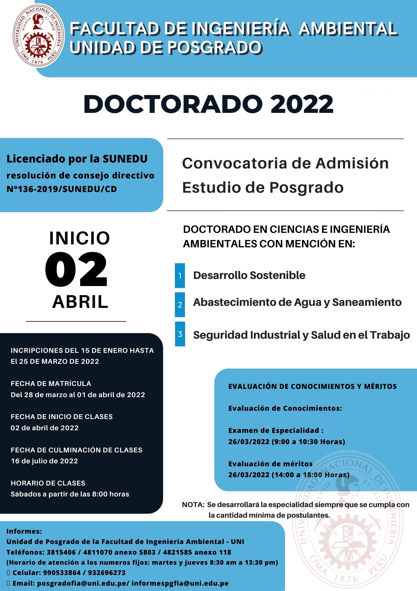 Lun Feb 28 UNIDAD DE POSGRADO FIA - DOCTORADO 2022 Published in Eventos Read 665 times Print Email Detalles: Fecha: Inscripciones hasta el 25 de Marzo del 2022 Rate this item 1 2 3 4 5 (0 votes) Tweet