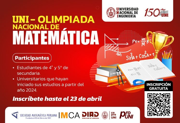 Esta importante competencia se enmarca en la celebración del 150 aniversario de la UNI y reafirma el rol central de la matemática como base fundamental de la formación científica e ingenieril. A través de esta olimpiada, se fomentará el razonamiento lógico, la abstracción y la resolución rigurosa de problemas en estudiantes de educación secundaria y universitaria.